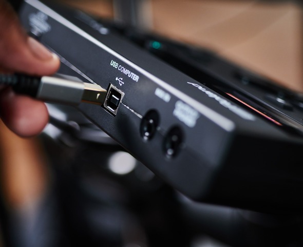 除了傳統套鼓的功能外,TD-07 鼓音源機還可作為audio和 MIDI 錄音介面,可透過使用一條 USB 導線,將立體聲音訊和 MIDI 資料傳送到您的 Mac/Windows 電腦。您可以直接錄製音訊和 MIDI 鼓音軌,到您最喜歡的音樂製作軟體,或者在錄音室或現場表演中,使用鼓軟體音源的音色來演奏。如果您想在您的音樂作品中加入現場演奏的鼓,TD-07KVX 的強大功能可為您的私人錄音室擴充實力。