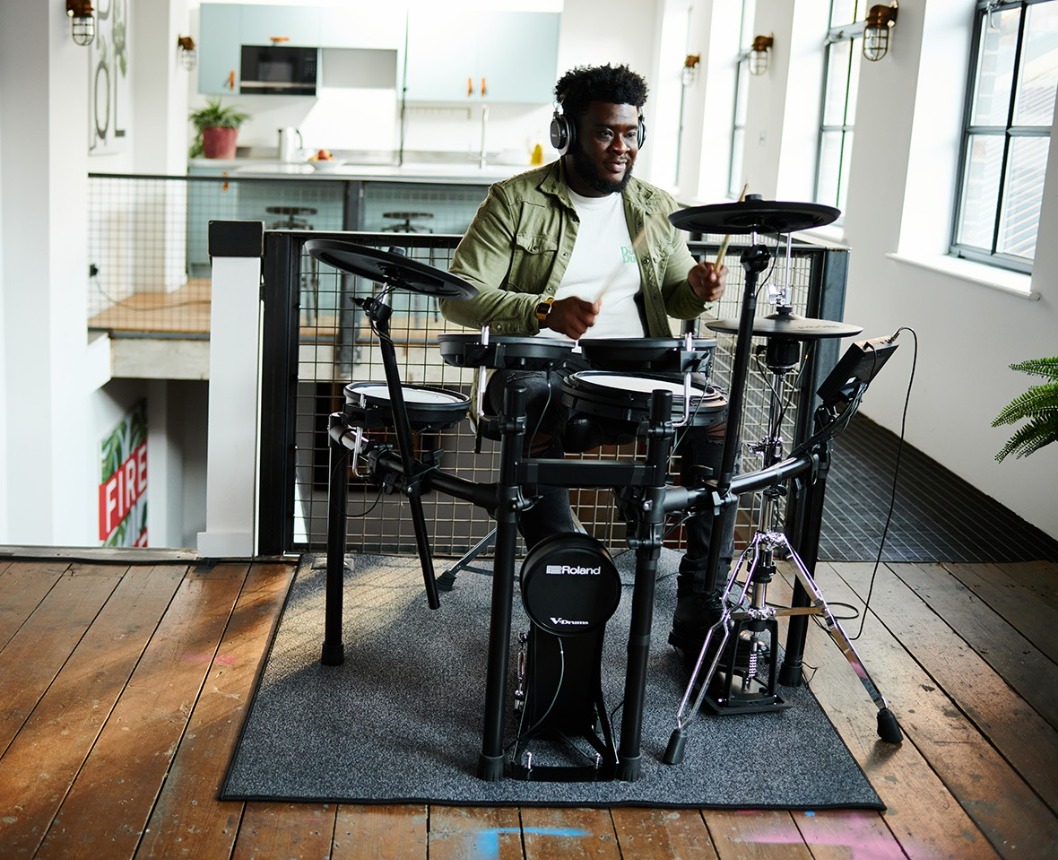 - 小鼓和中鼓打擊鼓使用 Roland 經典的可調鬆緊度的雙層網狀鼓面