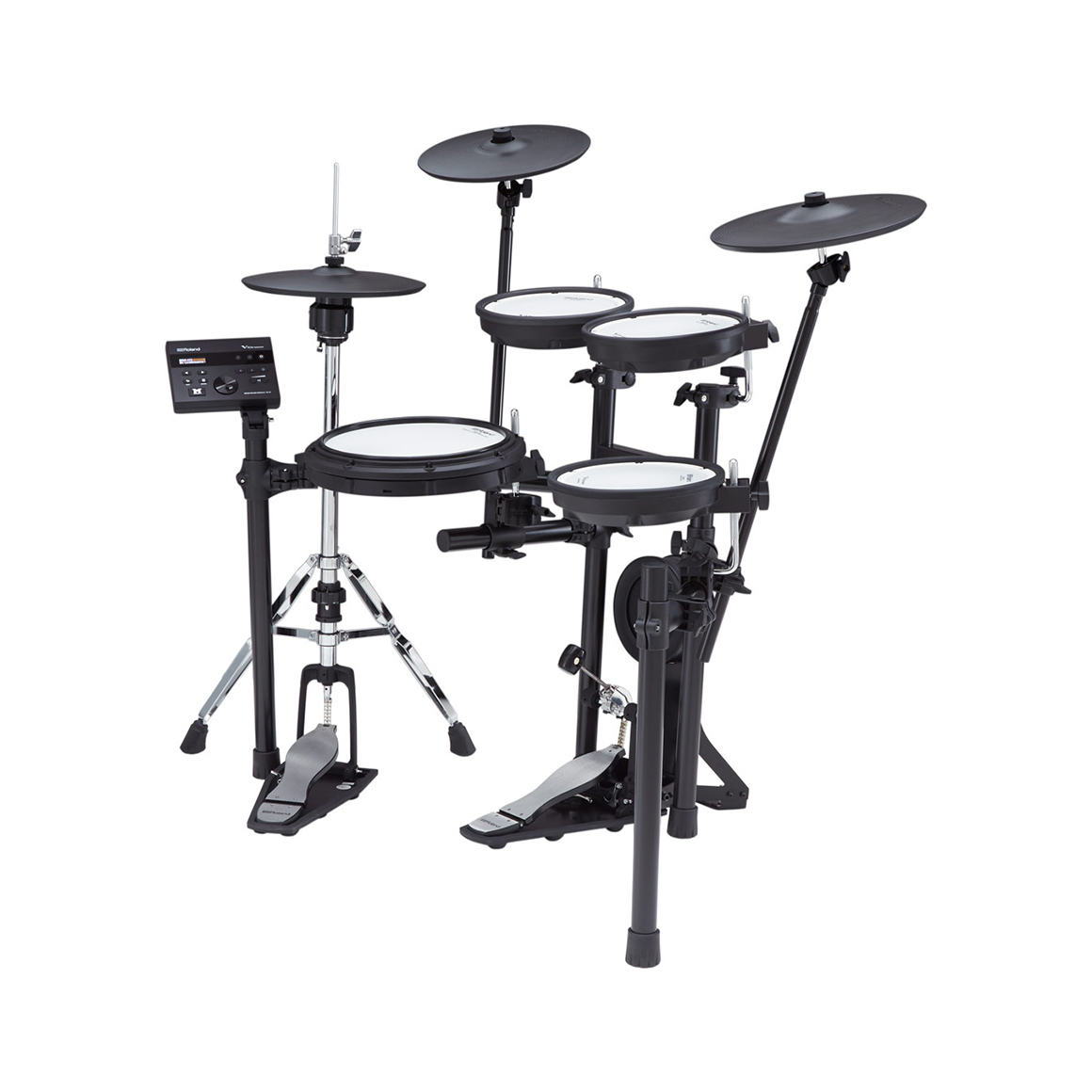 早在 1997 年,Roland 推出了世界上第一個網狀鼓面,徹底改變了電子鼓市場。這種獨特的雙層網狀結構設計,賦予了出色的傳統鼓面打感,可產生鼓棒阻力和回彈力,真實性甚至達到可用普通的鼓鎖來調節鼓皮的張力。這種生動靈活的打擊感和感應速度,唯有 Roland 網狀鼓面能實現。除了網狀鼓面以外, VH-10 hi-hat, CY-12C crash, 和 CY-13R ride也像您喜愛的傳統鈸一樣自然晃動,為演奏帶來全新的感受。