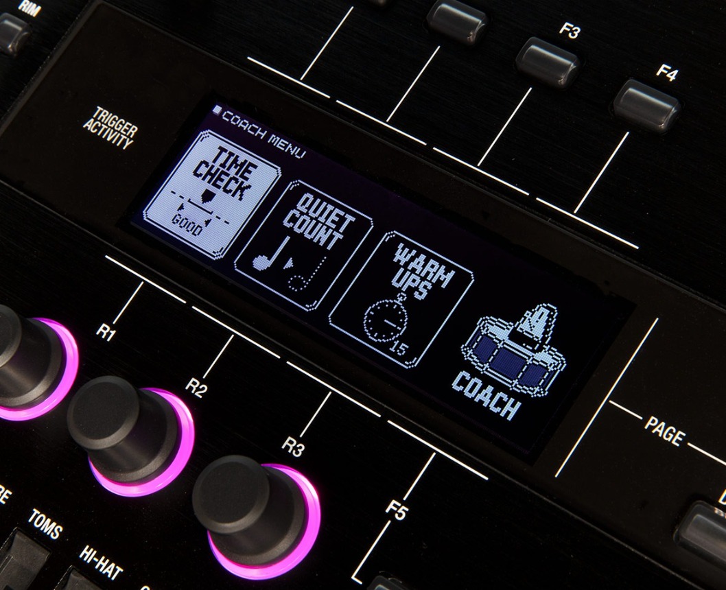 TD-50X 音源搭載練習功能,可輔助您鍛鍊技巧,並使例行練習變得有趣而有意義。透過內建的節拍器和 Coach 教練模式練習,來提升您的節奏感,或者跟著智慧型手機或筆記型電腦上播放的音樂一起打鼓。內建錄音器可讓您隨時補捉和檢視您的演奏成果,具有音訊匯出(搭配或不搭配背景音樂)功能可分享給別人。此外,您還可以使用 Melodics™這套免費的桌面應用程式,提供40堂課程可進一步增加您的練習,當您準備進階練習,還可以透過訂閱解鎖使用。