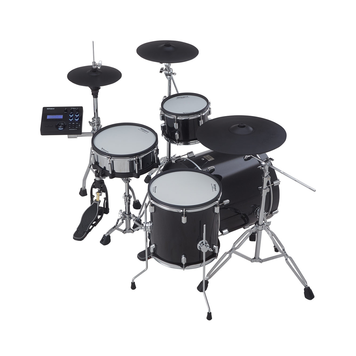 VAD503 具有令人驚艷的外觀、熟悉的配置佈局,以及頂尖傳統套鼓般激發靈感的演奏表現力,使任何鼓手都能立即找到熟悉的手感。套鼓的 14 吋不銹鋼小鼓、加上 10 吋中鼓,14 吋落地中鼓,和一個採用全尺寸鼓身木製鼓殼的20吋大鼓,更增真實性,在鼓棒和鼓槌下提供了真正的傳統鼓演奏體驗。配備完備的鈸包括 12 吋 V-Hi-Hat、14 吋 crash(具有薄型外型和具紋理的質感),和 18 吋 ride鈸,在舞台上提供卓越的演奏表現力和自然的外觀。
