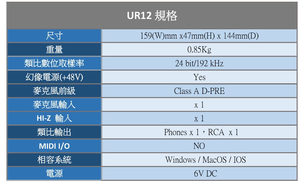如果您是數位音樂製作的新手,UR12 會是您的一台錄音介面來開始您的音樂之旅、錄製您的第一首歌曲並開始在電腦上編寫、錄製和混音,將您的靈感化為美妙的聲音。UR12 提供出色高品質輸出及輸入口來錄製及播放人聲和樂器,此外還附贈 Steinberg 的傳奇音樂製作系統 Cubase 的精簡和可升級版本。UR12 為您首次踏入數位錄音領域的您提供了非凡的價值