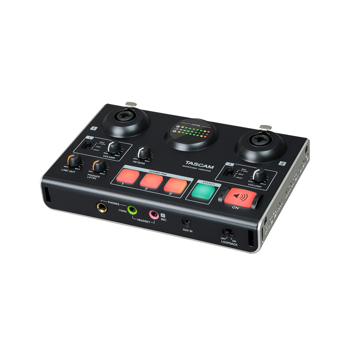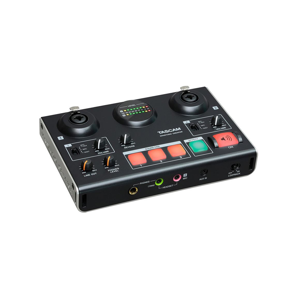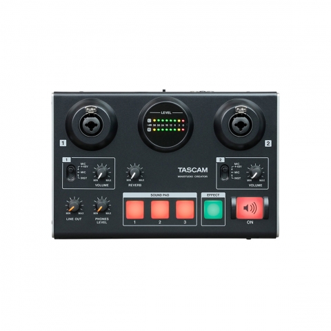 是一種音訊介面,具備為增加聽眾讓節目更有趣的技術,能夠進行“語音演出”。在電臺,將播放拍手、歡呼聲所代表的效果音叫做“伴音”。TASCAM MiNiSTUDIO系列配備伴音功能,只需按按鈕,就可添加效果音。此外,還配備有語音效果、混音功能,可改變主持人、嘉賓的聲音。一個動作即可在聲音上添加變化,讓節目更精彩。