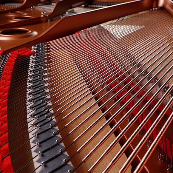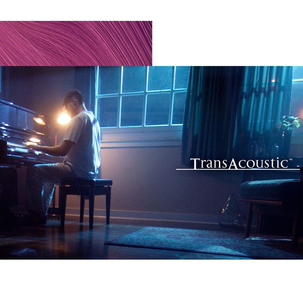 原聲鋼琴的聲音來自於琴槌敲擊琴弦,使其振動。這樣產生的音量過小,所以需要利用響板來將琴弦的振動放大,擴大後音量就是我們聽到的鋼琴聲音。這也是原聲鋼琴才獨有的發聲機制。TransAcoustic™ 技術就是採用原聲鋼琴這樣的發聲機制,讓所有數位音色(如CFX、小提琴、管樂...等) 都可以透過響板放大,而不是透過電子喇叭的功能。