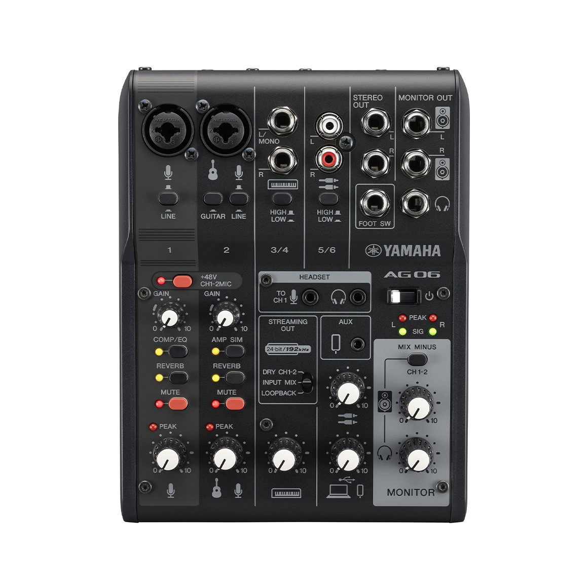 當我們面對網路直播時,麥克風輸入數也是同樣的概念。 使用者友好的配置和操作已成為 AG 系列的代名詞,而 AG06MK2 也提供相同的配置和操作,不過還配備兩個採用幻象電源的麥克風輸入,以供電容式麥克風使用。 加上靈活的連接,包含更高階的四極TRRS接口(可供連接耳機麥克風組合型),讓 AG06MK2 開闢更廣泛的對話、採訪、音樂合奏表演或其他 AG01 或 AG03MK2 的設定無法應付的直播應用。 特色 * 兩個電容式麥克風可同時使用 * CH1-2 輸入採用 +48 V 幻象電源,以供電容式麥克風或 Dl 盒使用 * CH2 提供吉他用的 Hi-Z 輸入 * 高解析度(24-bit,192 kHz)的 2 軌音訊錄製和播放 * 四極TRRS接口(可供連接耳機麥克風組合型),可支援廣泛的直播應用 * 靈活的輸入和Loopback回放功能,非常適合網路直播或錄音 * 方便直播時使用的一鍵靜音按鈕 * 使用一鍵效果(COMP/EQ、殘響和音箱模擬器)輕鬆控制並優化音色 * AG 控制器 (Windows/Mac/iOS) 供您進行精確的參數控制 * 支援 Windows/Mac,透過 USB-C 連接 * 透過 Apple 相機轉接器連接 iOS(需要外部 USB 電源) * 支援 Android,透過四極TRRS接口(可供連接耳機麥克風組合型)連接 * USB-C 電源輸入(5 V DC,900 mA) * 可使用 Cubase Al、WaveLab Cast、Cubasis LE 和 Rec'n'Shar*e