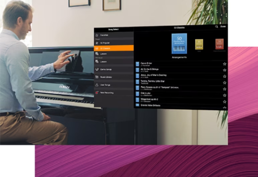 Clavinova CSP-200 系列具有選擇豐富的預設歌曲,從著名的流行和古典曲子到練習曲目皆有。在 Yamaha 專屬應用程式 Smart Pianist 查看樂譜,搭配瀑布引導燈引導練習。此外,也可以把新的樂曲增加到應用程式的收藏表單中。搭配自動生成伴奏譜立即彈奏樂曲