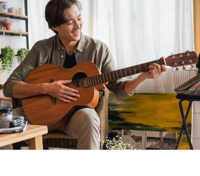 指板使用硬度較高的玫瑰木,氣孔較多、含有豐富油脂的特性,讓玫瑰木指板能適應各種環境,能有效傳導聲音震動。琴頸與指板經過拋光、打磨、倒角、去毛刺等多種細節程序處理,講究指板弧度打磨設計,能符合手指弧度,讓持琴手感更加舒適。上弦枕寬度為44MM,擁有20格琴格讓彈奏音域更廣。