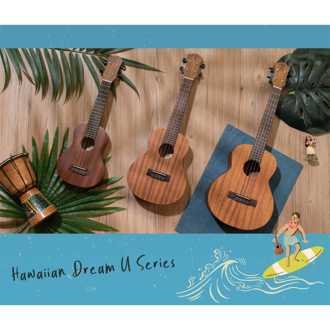 aNueNue Hawaiian Dream 『U系列』。有適合小朋友小小手的21吋,也有男女老少皆適宜的23吋,適合進階演奏的26吋。3種尺寸,多種選擇,輕巧好攜帶。