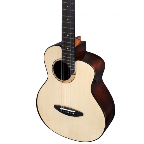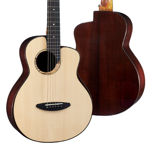 使用月亮雲杉木面板,搭配印度玫瑰木背、側板。月亮雲杉木,木材較一般雲杉白皙,除了雲杉的直條木紋之外,還擁有緊密的橫紋。