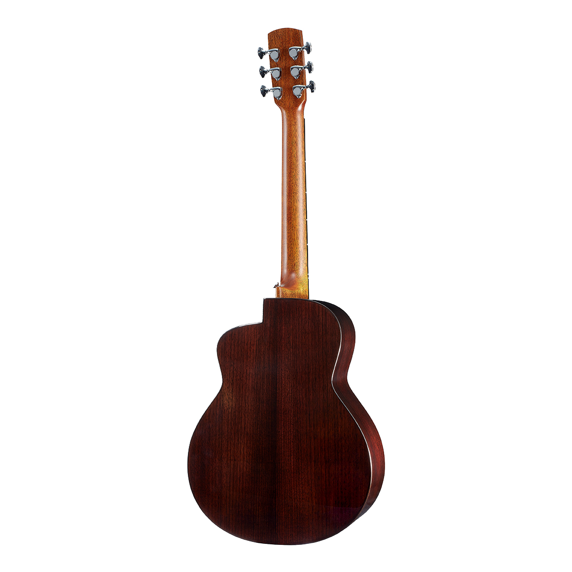 印度玫瑰木,擁有筆直的木紋,顏色呈現暗紅至深咖啡色。木頭質地硬,含有豐富的油脂不易變形,傳導速度快、音色溫和,中高音飽滿有力,低頻沈穩,掌握度很高,無論是獨奏或是伴奏都非常適合。