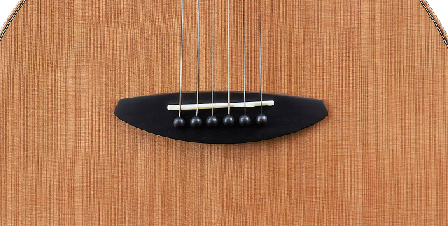 鳥吉他定製的造型琴橋,使用烏黑色澤的黑檀木,擁有緊密的木紋硬度,硬度更勝玫瑰木,能支撐琴的後段琴弦張力。搭配水牛骨弦枕,讓琴的延音有力,且擁有純淨的音色,質地堅硬清脆,能有效的傳導琴弦的共鳴。每一根弦都做了個別補償,讓琴能有更精准的音準。
