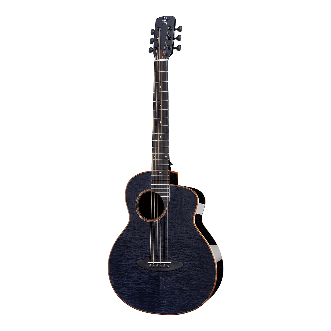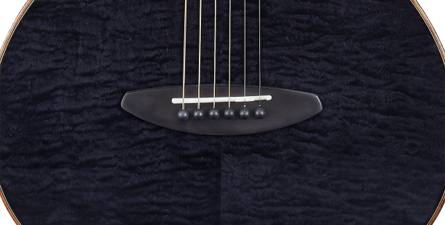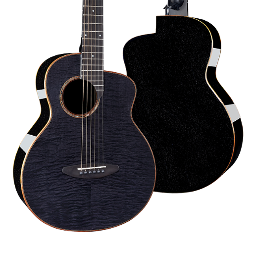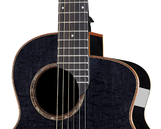 混合單面板的木頭使用汽車工藝的技術跨界運用,不同於將顏色直接漆在木頭上造成聲音的悶感,以染色的方式讓木頭從裡到外都變為黑色,不僅保留了木頭原本的木紋質感,也不影響木頭本身的音質。側背板則使用珠光亮光漆,漆面经过反覆的噴漆、打磨、風乾处理,漆面薄而透亮,展现高度光泽感。珠光具有极好的立体效果,提高精致程度。花圈以綠貝殼與木頭做設計。綠貝殼由自然貝類手工採集後,經人工挑選清洗打磨,色澤光滑且富有紋理,在光線照射下會閃閃發光,並因角度不同照成不同的紋理。貝殼內外加上木頭細線,讓貝殼花圈更添細節。琴身外側以桃花心木做鑲嵌,兼具美觀及保護的功能。