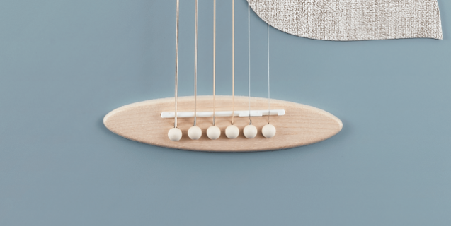 鳥吉他定製的橢圓造型琴橋,使用淺色紋路的楓木,能支撐琴的後段琴弦張力。搭配合成牛骨弦枕,質地堅硬清脆,能有效的傳導琴弦的共鳴。