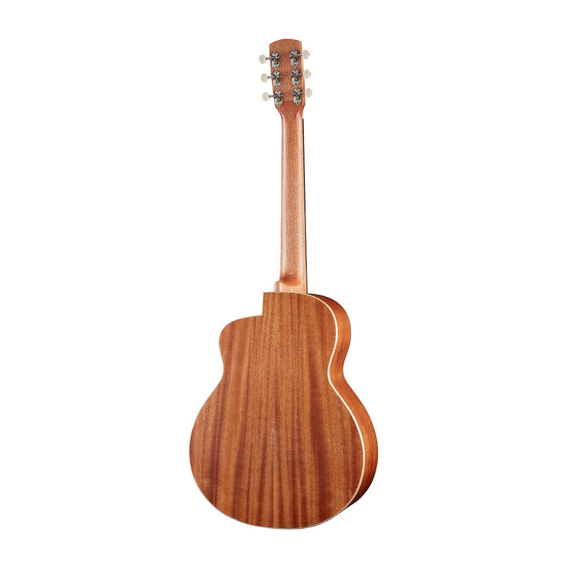 桃花心木,紋路較直,質地堅硬重量輕,聲音傳導較快,音色清脆高亮。彈奏時高頻較有顆粒感,低頻的呈現較溫暖豐富。