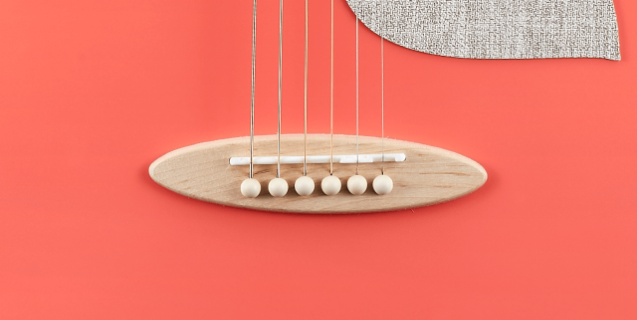 鳥鳥吉他定製的橢圓造型琴橋,使用淺色紋路的楓木,能支撐琴的後段琴弦張力。搭配合成牛骨弦枕,質地堅硬清脆,能有效的傳導琴弦的共鳴。