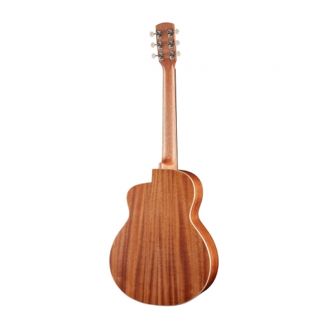 桃花心木,紋路較直,質地堅硬重量輕,聲音傳導較快,音色清脆高亮。彈奏時高頻較有顆粒感,低頻的呈現較溫暖豐富。