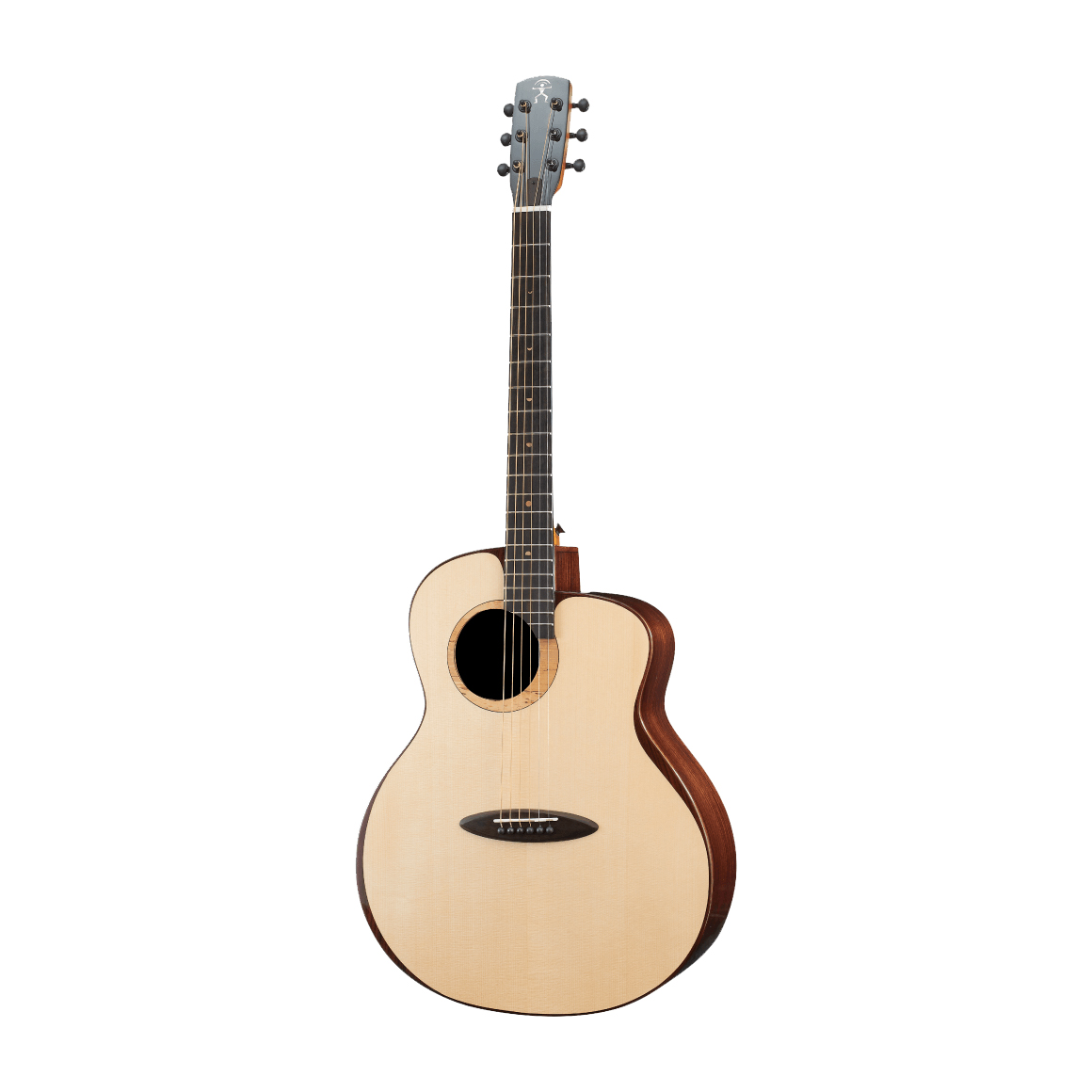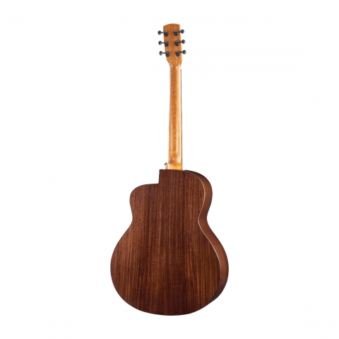 音孔花圈鑲嵌腐朽楓木,增添層次與細節。玫瑰木鑲嵌琴身外側,由側板延伸至面板的玫瑰木曲線護邊,取自「月有陰晴圓缺」概念,美觀及保護功能兼具。細節介紹