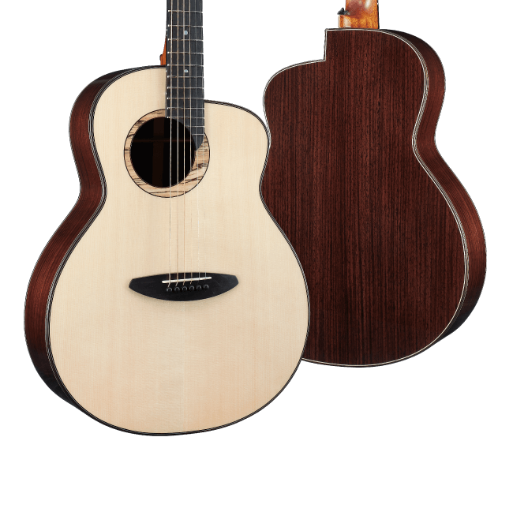 音孔花圈鑲嵌腐朽楓木,增添層次與細節。玫瑰木鑲嵌琴身外側,美觀及保護功能兼具。