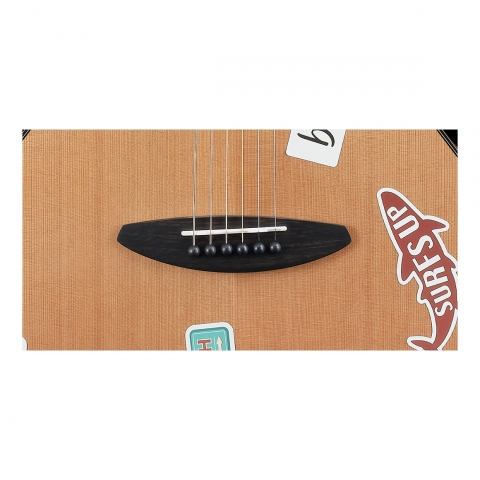 鳥吉他定製的造型琴橋,使用烏黑色澤的黑檀木,擁有緊密的木紋硬度,硬度更勝玫瑰木,能支撐琴的後段琴弦張力。搭配水牛骨弦枕,讓琴的延音有力,且擁有純淨的音色,質地堅硬清脆,能有效的傳導琴弦的共鳴。每一根弦都做了個別補償,讓琴能有更精準的音準。