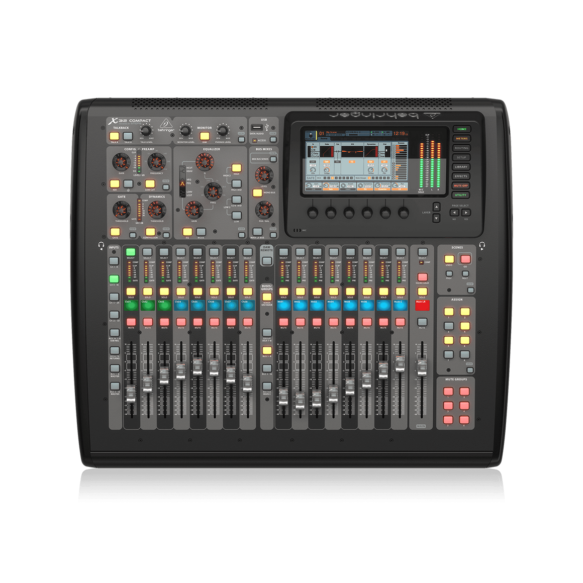 緊湊型 40 輸入、25 總線數字調音台,配有 16 個可編程 Midas 前置放大器、17 個電動推子、通道 LCD、32 通道音頻接口和 iPad/iPhone* 遠程控制。