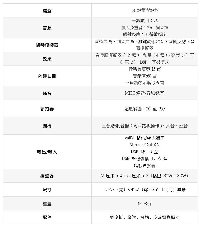 其低音範圍讓人印象深刻。音色暖和厚實,無論是柔和抑或是激情的演繹都十分出色。彈奏經典音樂的理想樂器