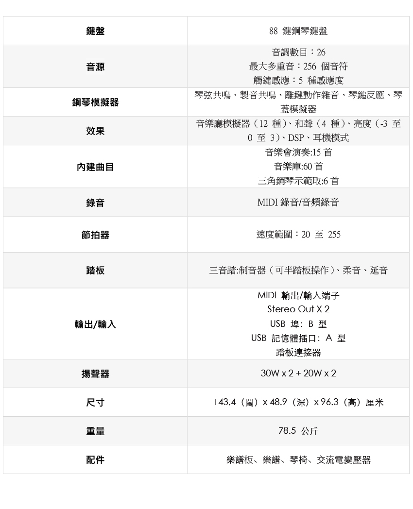 GP-310電鋼琴規格