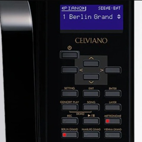 CELVIANO Grand Hybrid 配備簡單和設計體貼的控制面板,方便易用。透過專屬按鈕,即可便捷地轉換至柏林三角鋼琴、漢堡三角鋼琴或維也納三角鋼琴的音色。