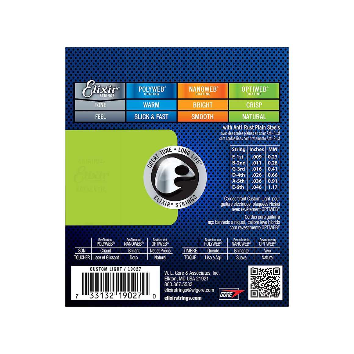 材質:Elixir® 電吉他鍍鎳鋼弦(OPTIWEB 超薄包膜)為您帶來手感如天然琴弦一樣的出色表現— 您所了解和深愛的清亮音質、無覆膜手感以及便於演奏的握持感— 同時依然維持Elixir琴弦標誌性的長久音質壽命。