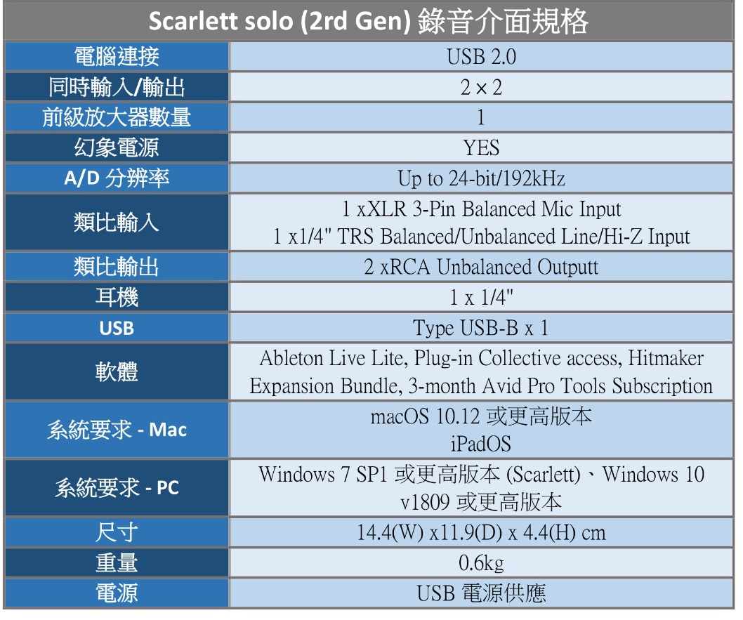 - 新的Scarlett麥克風前級音頻處理器有著平均的增益結構,可以更精準的設定輸入音量,且樂器輸入端也完全重新設計,在錄電吉他時可以更嚴謹的處理。