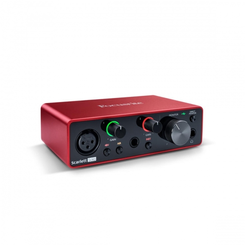 升級後的第三代 Scarlett 麥克風前置放大器具有可切換的 48V 幻象電源,可容納您最喜歡的電容麥克風和可選的 Air 設置,可再現 Focusrite 原始 ISA 麥克風前置放大器的 Air 效果,為您的人聲錄音提供增強的亮度和開放度。