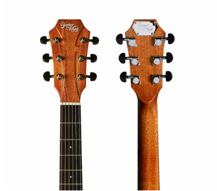 採用新穎的製作方法,在面板與背板之間放入一根音柱,可切換不同的材質而造成音色改變,讓同一把吉他有截然不同的多種音色變換,此音柱Gopherwood全系列皆可使用(每把琴內本身就附有一根音柱),也可另購音柱包讓您擁有更多音色切換的選擇哦~~