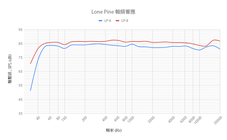 這兩款型號都使用 40W 的 1″ soft dome tweeter 高音單體。 LP-6 使用 40W 的 6.5-Inch woofer 低音單體;LP-8 使用 60W 的 8-Inch woofer 低音單體。
