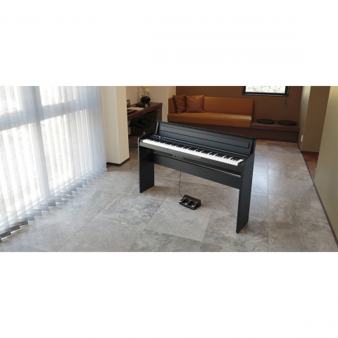 纖薄的 LP-180 深度僅為 27 厘米,可以放置在任何地方。KORG 此類樂器首次提供了鍵盤蓋,讓樂器在您不演奏時可以優雅地融入任何房間。雖然纖薄時尚,但機身設計也凸顯出穩重感。