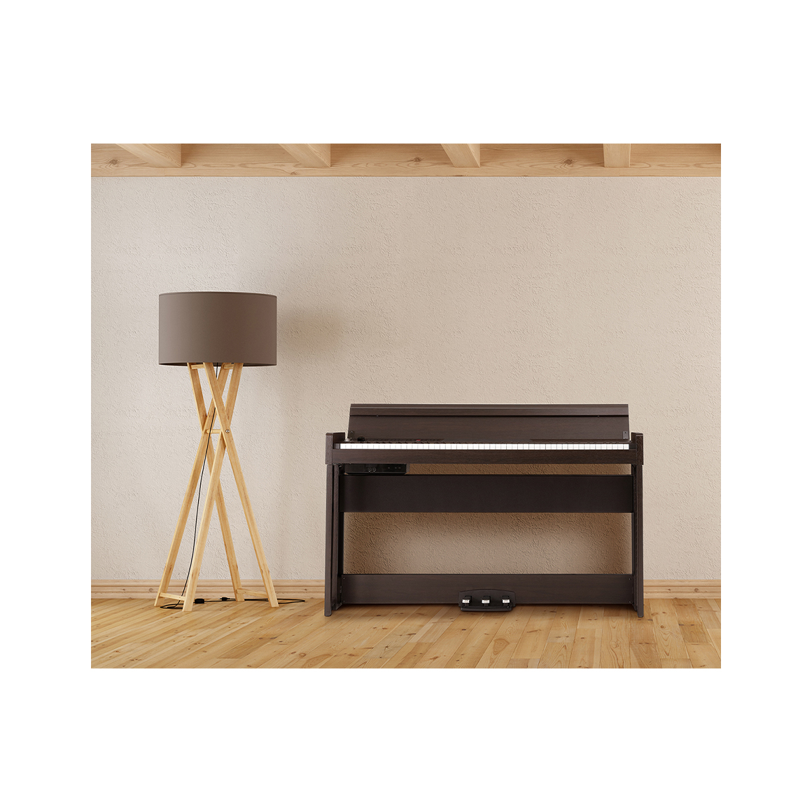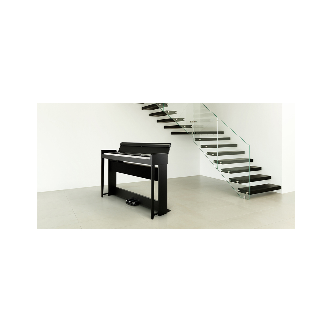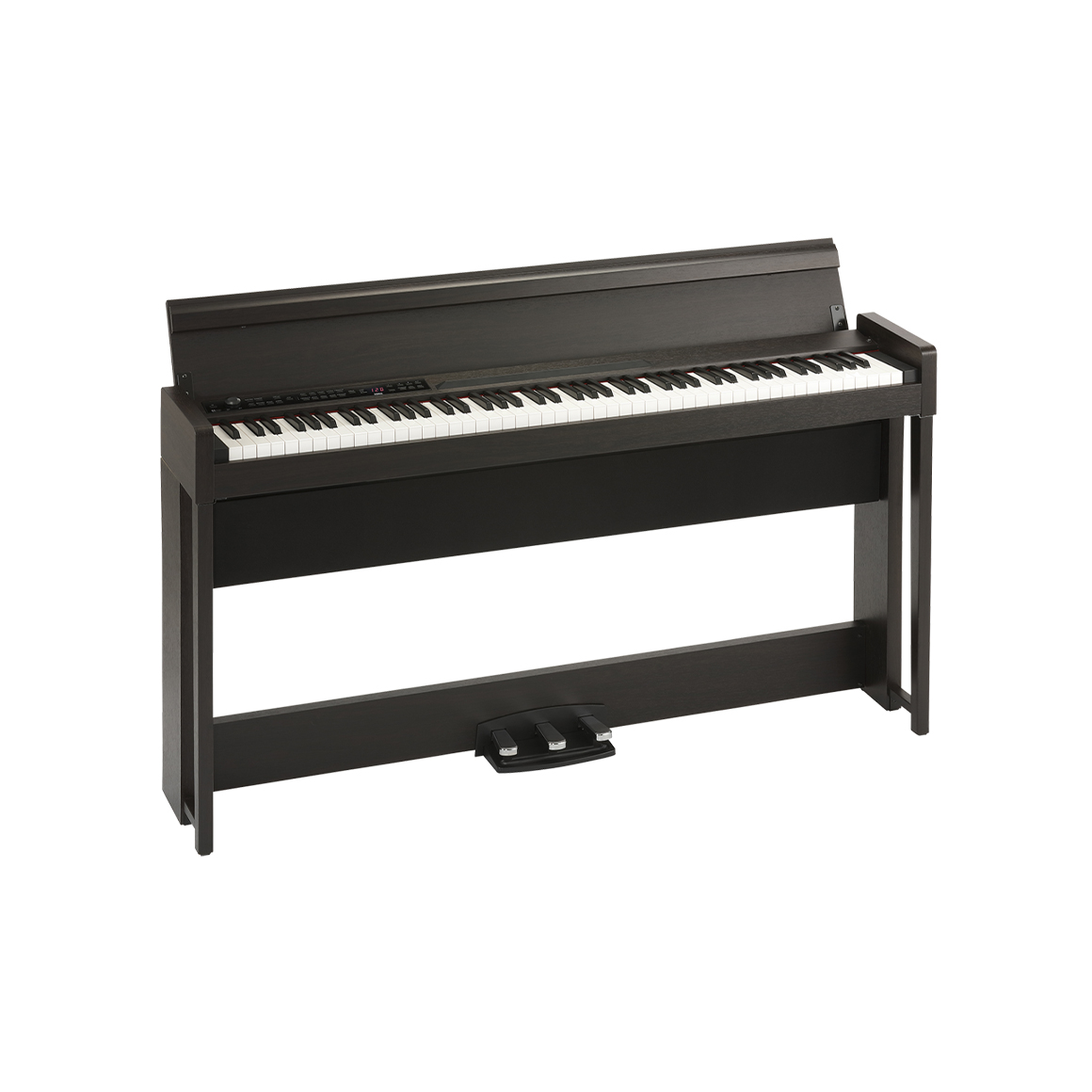 精湛的聲音和出色的設計,擺放在任何房間可增添時尚感C1/C1 Air是一台真正優美的數位鋼琴。憑藉KORG獨特的樂器設計和音響技術歷史,提供了高質感的彈奏手感和多功能性,可以超越最嚴苛的鋼琴家的期望。C1/C1 Air從緊湊細長的機身及所提供的音色的深度和清晰度都將使演奏家和觀眾驚嘆不已。精確設計的鍵盤提供了一種高質感的手感,可幫助學生培養出一種健全的彈奏技術,同時又能充分滿足更高級演奏家的需求。首先,KORG C1/C1 Air是一款精湛的鋼琴,在不能使用傳統樂器的地方可作為傳統樂器的最佳替代品。且它不需要調音,也可以戴著耳機一起使用,以避免打擾他人。此外,各種附加功能將激發所有演奏者的彈奏能力,並增強他們的音樂享受,包括30個超真實的樂器音色,藍芽音頻串流播放(只適用於C1 Air)及內建錄音功能。KORG C1/C1 Air在日本設計製造,其重新定義了數位鋼琴。主要功能Japan日本設計及製造 –重現日本卓越的高質感。一共有30個高品質的樂器音色。其中有兩款世界級的平台鋼琴音色(來自德國及日本等兩家知名品牌的鋼琴音色)三款效果器(明亮度(brilliance),殘響(reverb)及合聲(chorus))。數位化重現真實平台鋼琴的制音器共振及琴弦共振效果。使用Korg公司旗艦級的RH3琴鍵觸感,完全擬真於平台鋼琴的觸鍵手感。並有琴鍵釋放(Key-off)聲音模擬及五種力度可選擇。新研發的放大器及喇叭系統。讓鋼琴音色從25瓦x2喇叭傳送到彈奏者的耳朵是那麼真實重現。精緻優雅時尚的琴身設計,且整體深度只有26公分,可置放於任何地方。且上蓋掀起可成為全寬版的譜架。配置標準三踏板,並有半踏功能。有快速分鍵功能,可進行左右手不同音色彈奏或四手聯彈。內建40首示範鋼琴曲。有兩軌數位錄音可幫助你分析或保存你的演奏記錄。您可以分別記錄每一隻手彈奏的情況,或者將另外的歌曲錄製到先前預錄好的歌曲上。 並可以調節播放速度,最多可以儲存99首使用者錄製的歌曲。有藍芽音頻播放系統,可以隨著手機內的音樂透過藍芽由C1的喇叭播放並一起彈奏 (只對應於C1 Air機型)規格音高:有移調(Transpose),主要音調(Master tuning)。音源產生方式:立體聲PCM最大發音數:120 voices (max)音色:30種音色(10×3)效果器:有三款效果器(明亮度(brilliance),殘響(reverb)及合聲(chorus)),每一個都有3個層級。錄音器:兩軌錄音,最大可有14,000音符 (100k bytes),示範歌曲:50首 (音色示範:10首,鋼琴曲:40首)節拍器:可設定拍速(Tempo),節拍(beat),音色及音量踏板:制音器(Damper)可支援半踏,柔音(Soft),延音(Sostenuto)連接端子:導線輸出,MIDI (IN, OUT),耳機x 2,踏板,喇叭,DC 24V電源。控制部份:電源開關,音量旋鈕, PIANO歌曲鍵,Transpose(移調鍵),FUNCTION進階功能鍵,Touch(琴鍵觸感)鍵,明亮度(brilliance),殘響(reverb)及合聲(chorus),BANK音色庫,音色鍵X 10,顯示幕,+/-鍵,METRONOME節拍器,PLAY/PAUSE播放/暫停鍵,STOP停止鍵,REC錄音鍵,PART1, PART2喇叭:10 cm x 2輸出功率:25 W x 2電源供應: DC 24 V電源功率消耗: 18 W