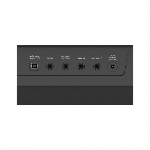 可連接電腦DAW(音樂工作站)軟體、踏板、耳機孔/音量輸出孔、麥克風輸入孔。