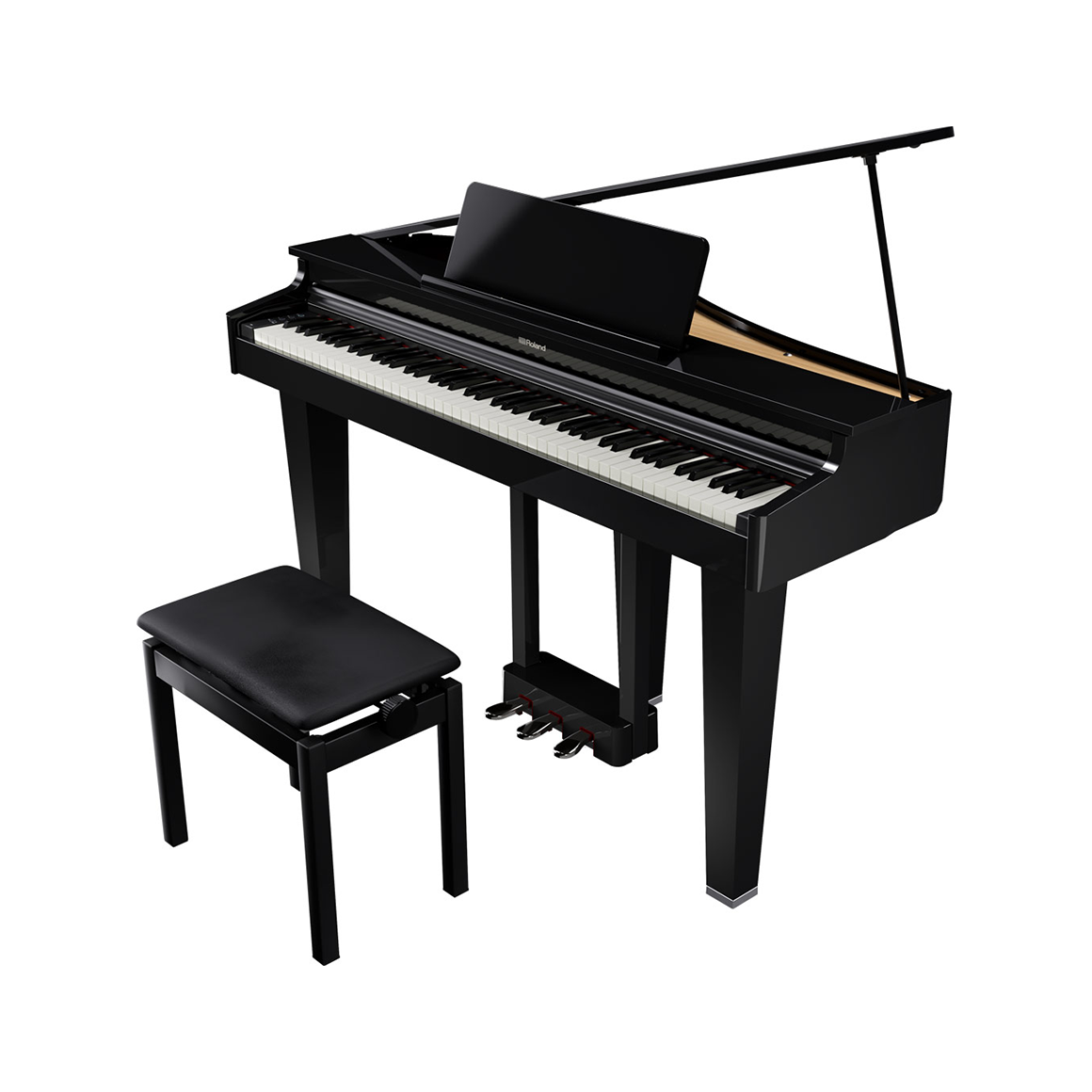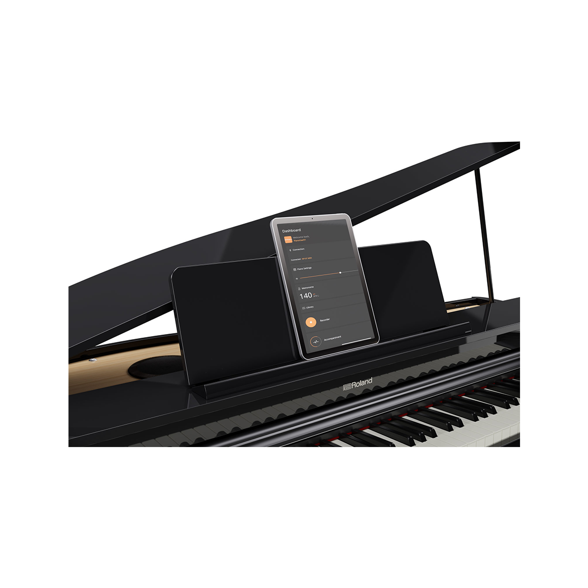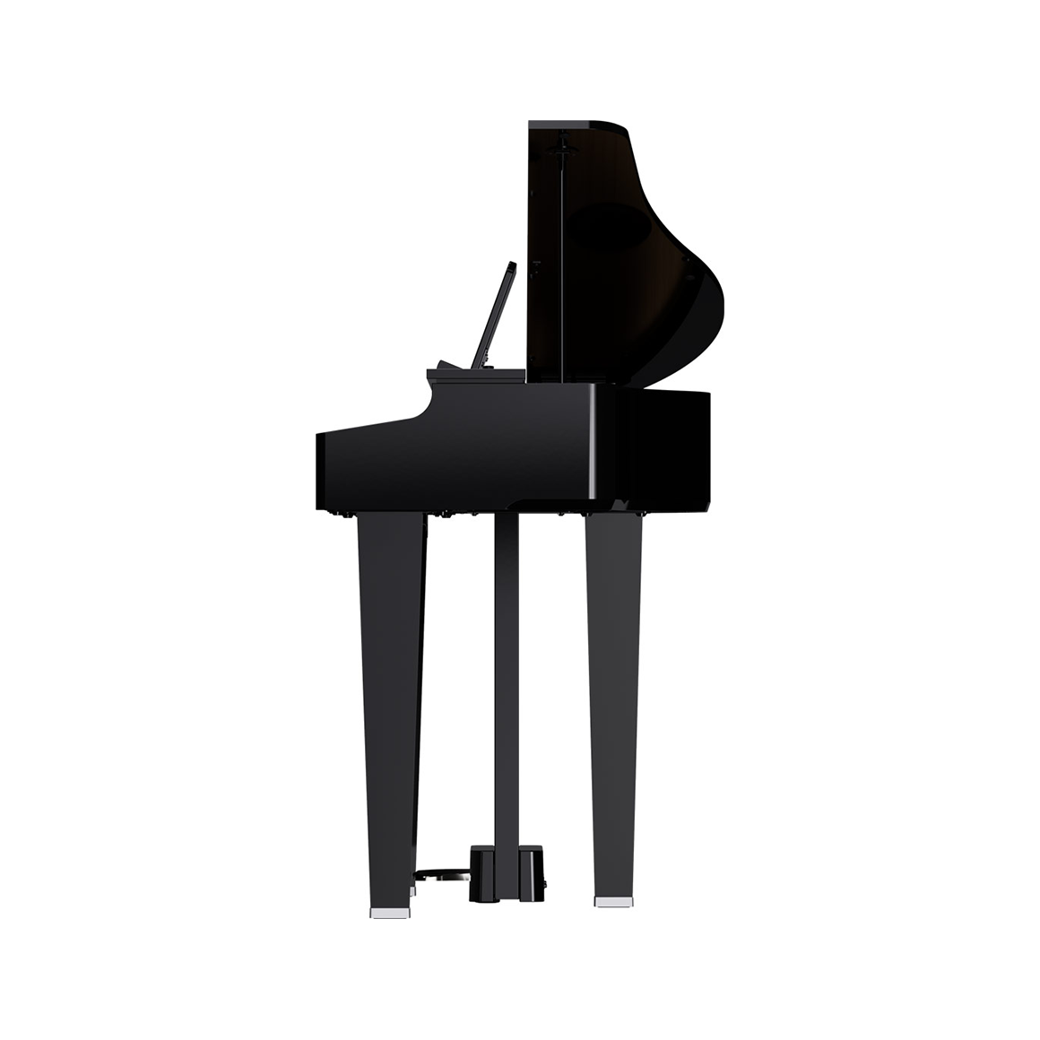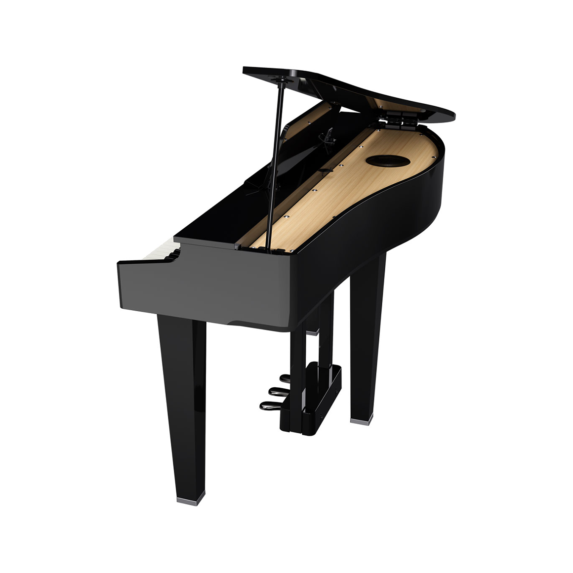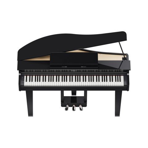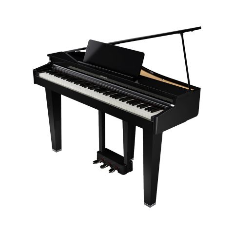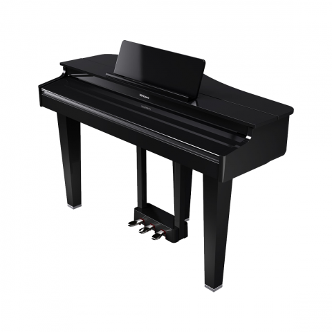 擁有三角平台鋼琴的外型,運用科技數位將它成為最棒的存在,原本擺置琴弦的地方由電鋼琴的喇叭作替代,讓您更好保養鋼琴!