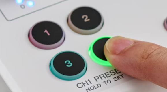 AG08 混音器左下方的四個效果預設按鈕讓您能夠瞬間無縫切換聲道 1 的客製預設效果。這為使用者提供多元化的即時控制,為音訊添加恰到好的效果——包括新增的變聲器——尤其是在配音和現場音樂表演時。