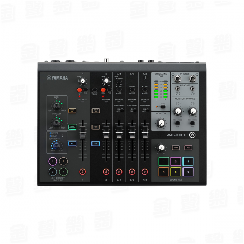 AG08 是 Yamaha 第二代 AG 系列陣容的旗艦型號,它結合了前代產品的所有基本功能以及選擇眾多的實用新功能,為您提供一個強大的多合一直播站。AG08 整合了更彈性的輸入輸出和 USB 路由選擇、擴充腳踏開關功能,以及額外的 DSP 效果,還有改良內部線路提供同級別最高音質,能夠支援很有深度的現場直播應用及離線的音訊內容創作。從單人說話、遊戲、ASMR、配音或人聲 / 樂器表演,一直到多人應用,甚至是大型綜藝節目的規模,AG08 提供的實境和即時功能將會讓您的觀眾流連忘返。