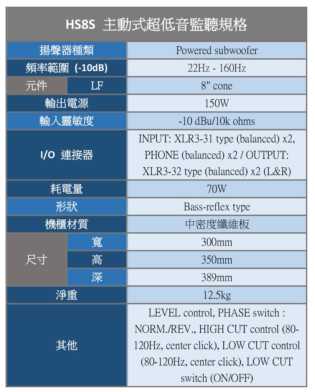 證了HS 系列同時具備震撼的低頻和準確的中頻。