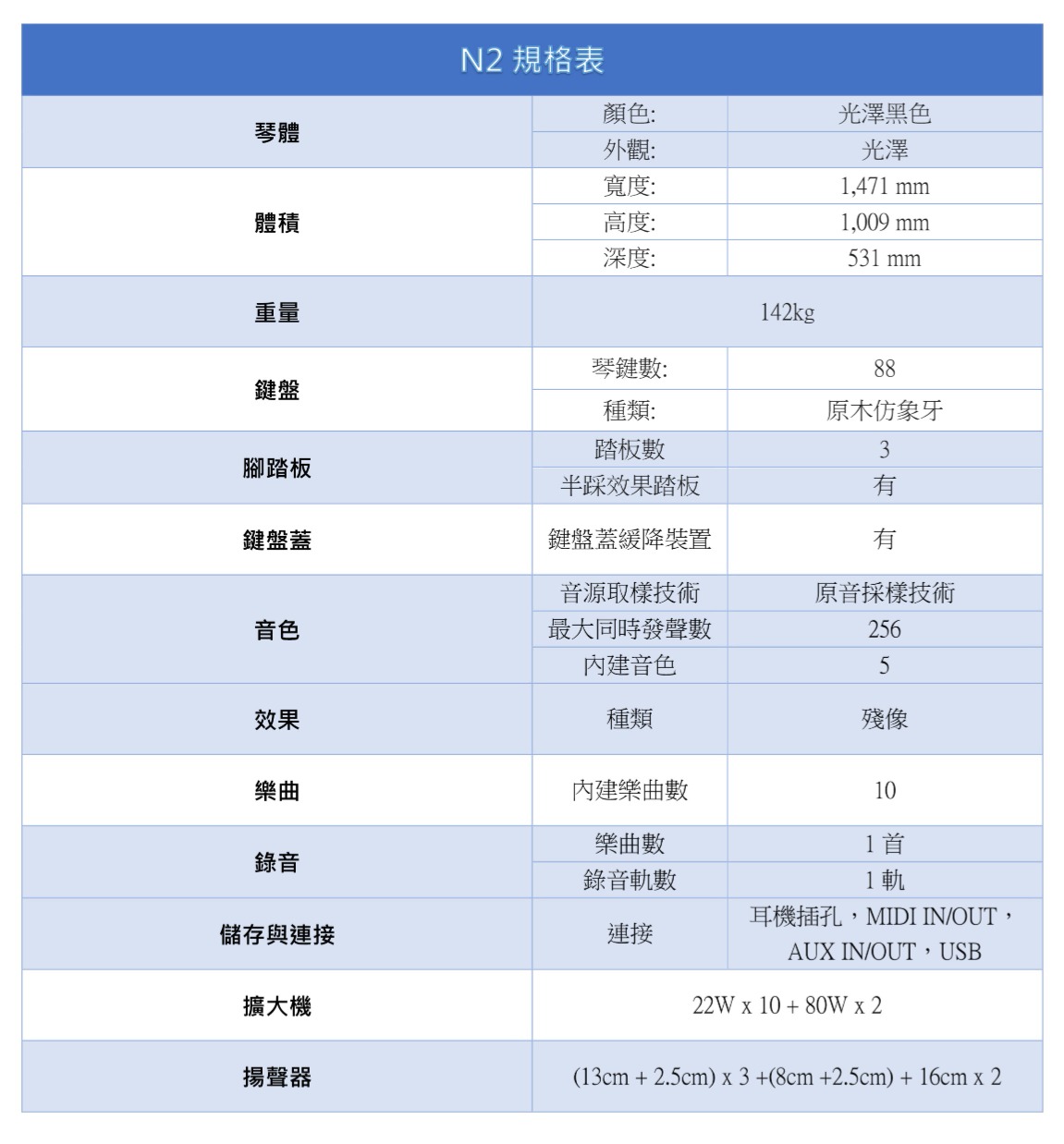 平台鋼琴專用的打擊系統與鍵盤擁有平台鋼琴般微妙的觸鍵與反應力是衡量鋼琴品質標準的重要要素。為了使演奏者能有更加順暢的彈奏感覺, 特別開發了一個與真實平台鋼琴一樣的打擊系統。包括模擬琴槌從”琴弦”的下方敲擊, 紀錄各琴槌重量的分佈, 以及琴槌的移動狀態等等。另外, 本樂器擁有非接觸式的琴鍵感應器, 能夠精準的感應琴鍵的細微作動, 精準的辨識出彈奏者彈奏時的力度, 時間點, 以及最細微的音調變化。結合了這些特點, 能夠由極柔弱至極強之間淋漓盡致的表達樂曲中的情感變化, 甚至是最快速的顫音, 也能透過鋼琴家完整的詮釋。全新開發的獨家材質-天然木質及第二代New Ivory仿象牙構造(白鍵)的琴鍵, 展現平台鋼琴鋼琴的觸感與質感。不論是彈奏一段輕快曼妙的樂章, 或是感情富饒而緩慢的作品, 都能輕鬆非常, 毫不費力。